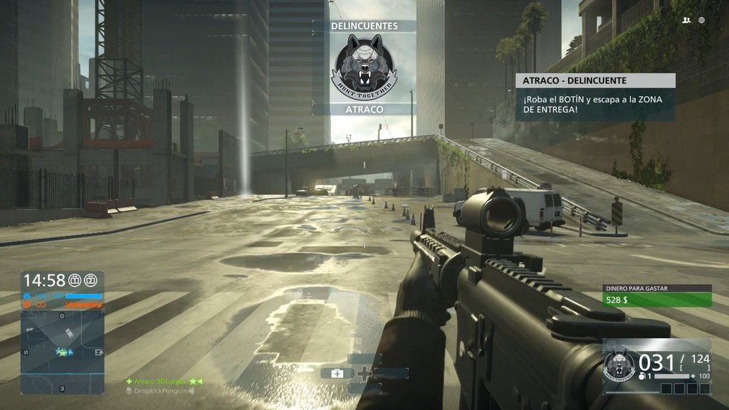 El siguiente modo será Dinero Sangriento, modo que nos situará en mitad del mapa un montón de dinero y que ambos equipos deberá de conseguir. La mecánica es simple, tendremos que exponernos al fuego enemigo para coger los billetes y acto seguido devolverlos a nuestra base. Podremos usar coches, motos, etc., lo que hará que este modo sea tremendamente divertido y con infinitas posibilidades jugables en cada partida.